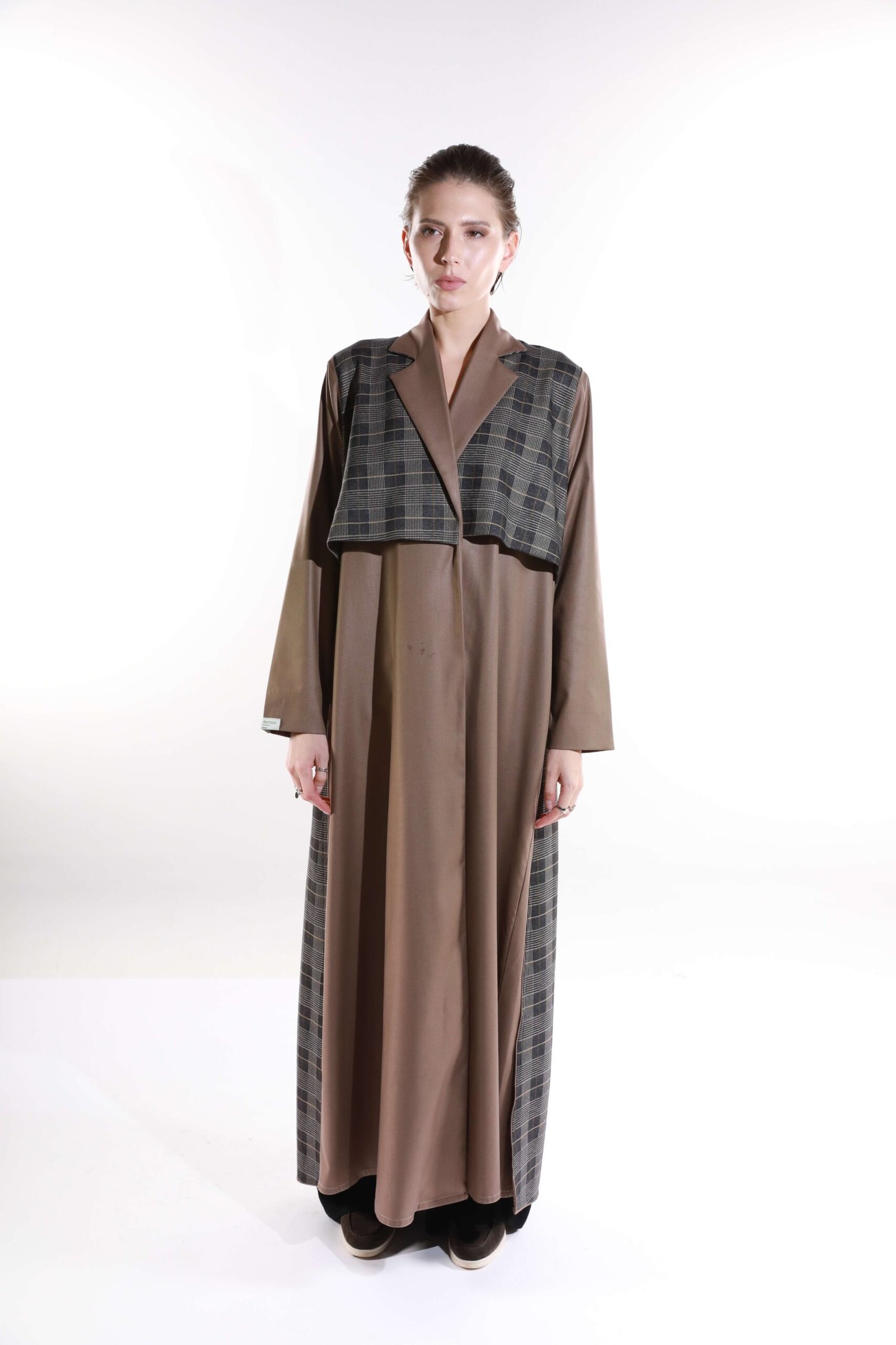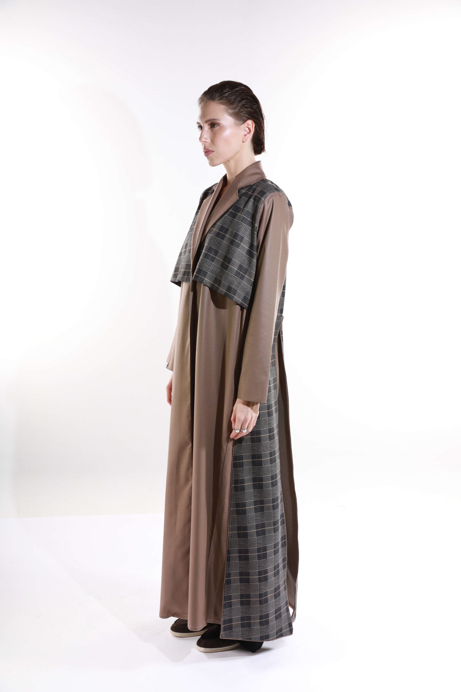 أناقة الكلاسيك تجتمع مع فخامة الكشمير بفتحات تُبرز تفاصيل الخامة في قصة راقية تُجسّد تحفة فنية من أناقة الموسم.